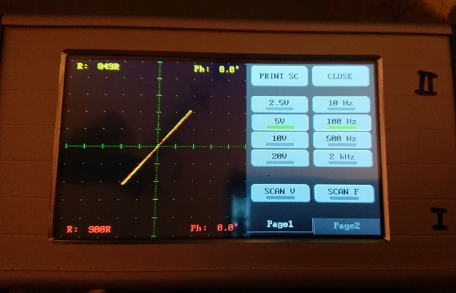 Hier wir das ausgebaute Motor-Poti geprüft. Die Größte Abweichung (Poti  in der 10 Uhr Stellung) zwischen den beiden Leiterbahnen des linken und Rechten Kanals ergab einen Wert von ca. 50 Ohm, was eine Kanaldifferenz am VU-Meter von ca. 0,5 dB ergab.
