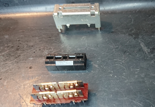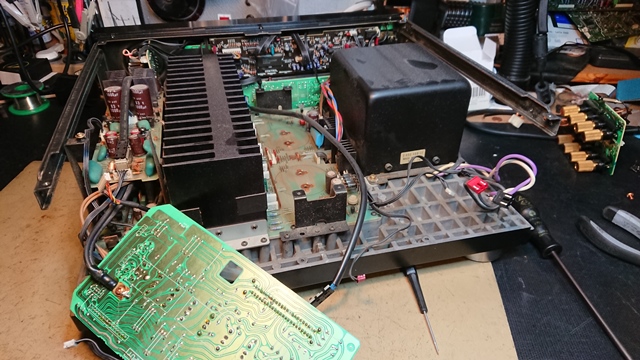 Sehr oft macht der Source-Schieber auf der Eingangsplatine Schwierigkeiten. Der Aufwand ist nicht gering, da hierfür die komplette Rückseite demontiert werden muss; der Schalter ausgelötet und zerlegt werden muss, um das Problem zu beseitigen.