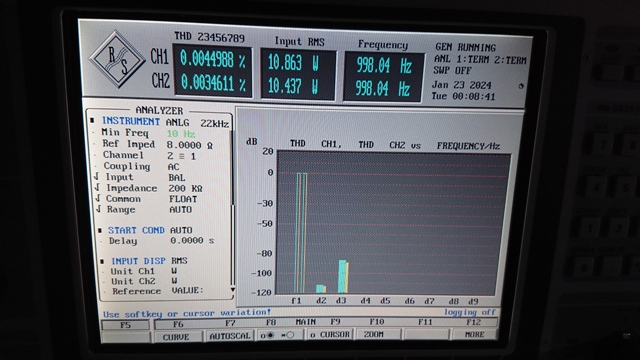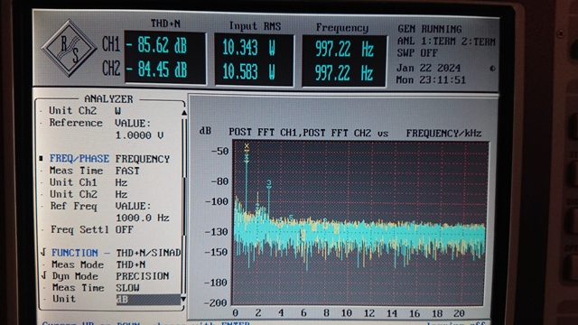 Und so sehen die THD-Werte nach erfolgreicher Reparatur/ Revision  aus. Hier habe ich allerdings bei der Messung rechten und linken Kanal irrtümlich vertauscht.