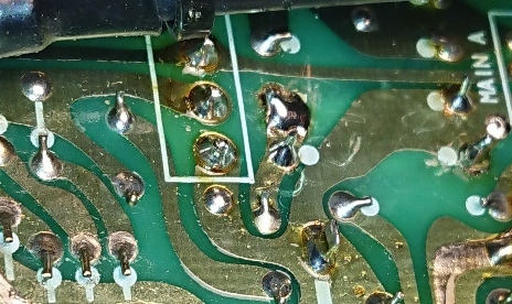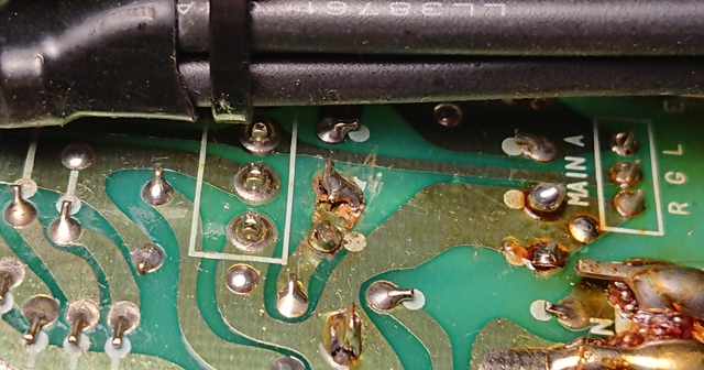 Hier war schon jemand dran und hat stümperhafte Lötungen vollbracht und zudem auch noch kalte Lötstellen übersehen.